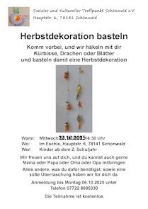 Wir freuen uns auf dich, und du kannst auch gerne Mama oder Papa oder Oma oder Opa mitbringen. Alles andere, was du dafür benötigst, sowie eine süße Überraschung haben wir für dich da. Anmeldung bis Montag, 20.10.2025 unter Telefon 07722 8695330.